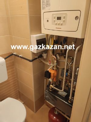 Munkálatok megkezdése: Régi készülék leszerelése. Égéstermék elvezető rendszer kiépítése. A gázkazán felszerelése, fűtési rendszerről hőcserélővel történő leválasztása.